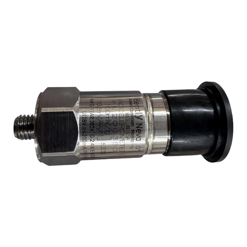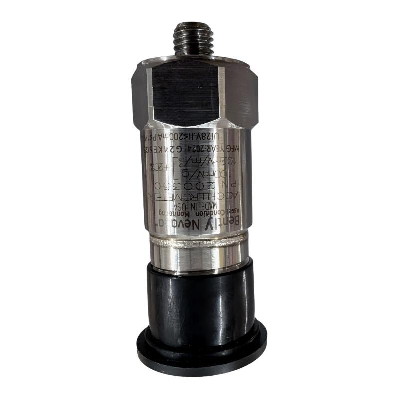 This accelerometer is designed to measure vibration and acceleration in industrial machinery. It converts mechanical vibration into electrical signals that are used by condition monitoring systems to evaluate equipment health and detect early signs of mechanical issues such as imbalance, misalignment, or bearing wear.