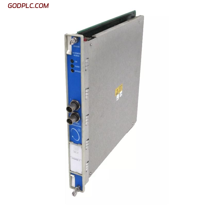 The Bently Nevada 3500/50 Tachometer Module (133388-02) is a two-channel speed and phase monitoring module designed for use within the Bently Nevada 3500 Machinery Protection System.